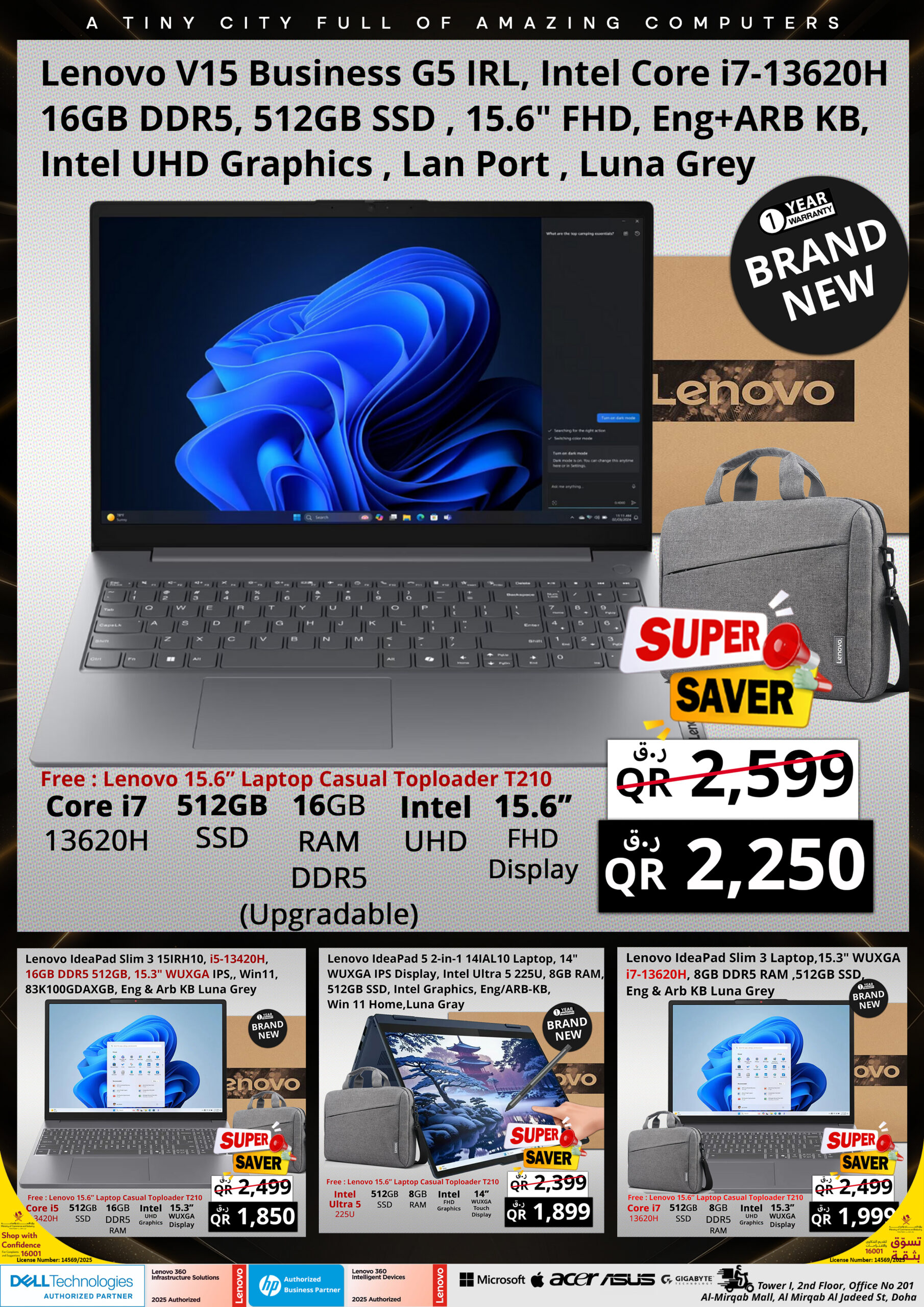 Lenovo V15 G5 IRL, Intel Core i7-13620H, 16GB DDR5, 512GB SSD Nvme, 2242 15.6″ FHD (1920×1080), Intel UHD Graphics, Lan Port Luna Grey Colour Dos | 83HF00EMIG