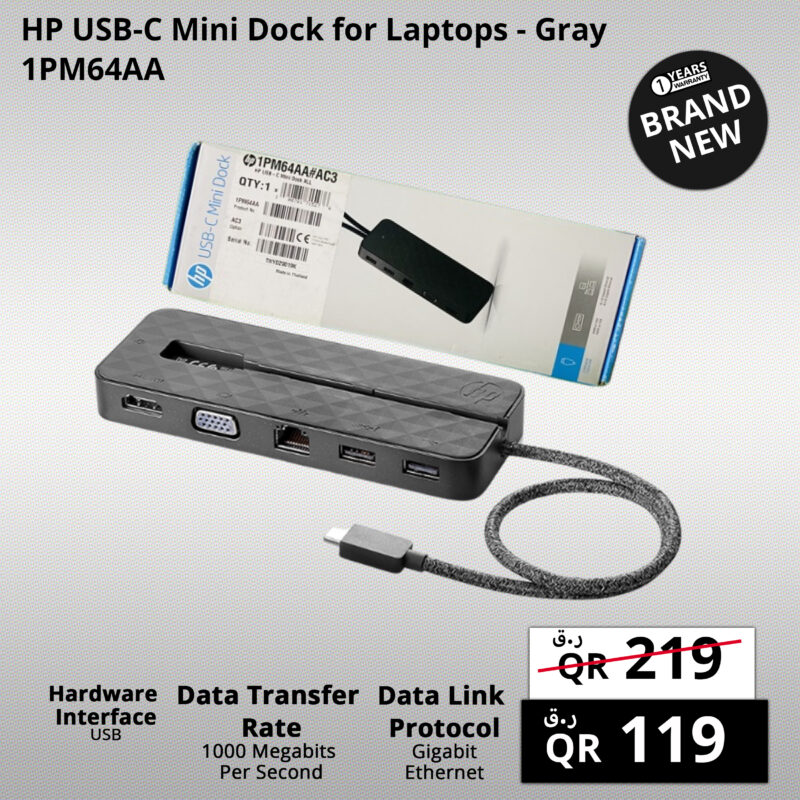 HP USB-C Mini Dock for Laptops - Gray 1PM64AA