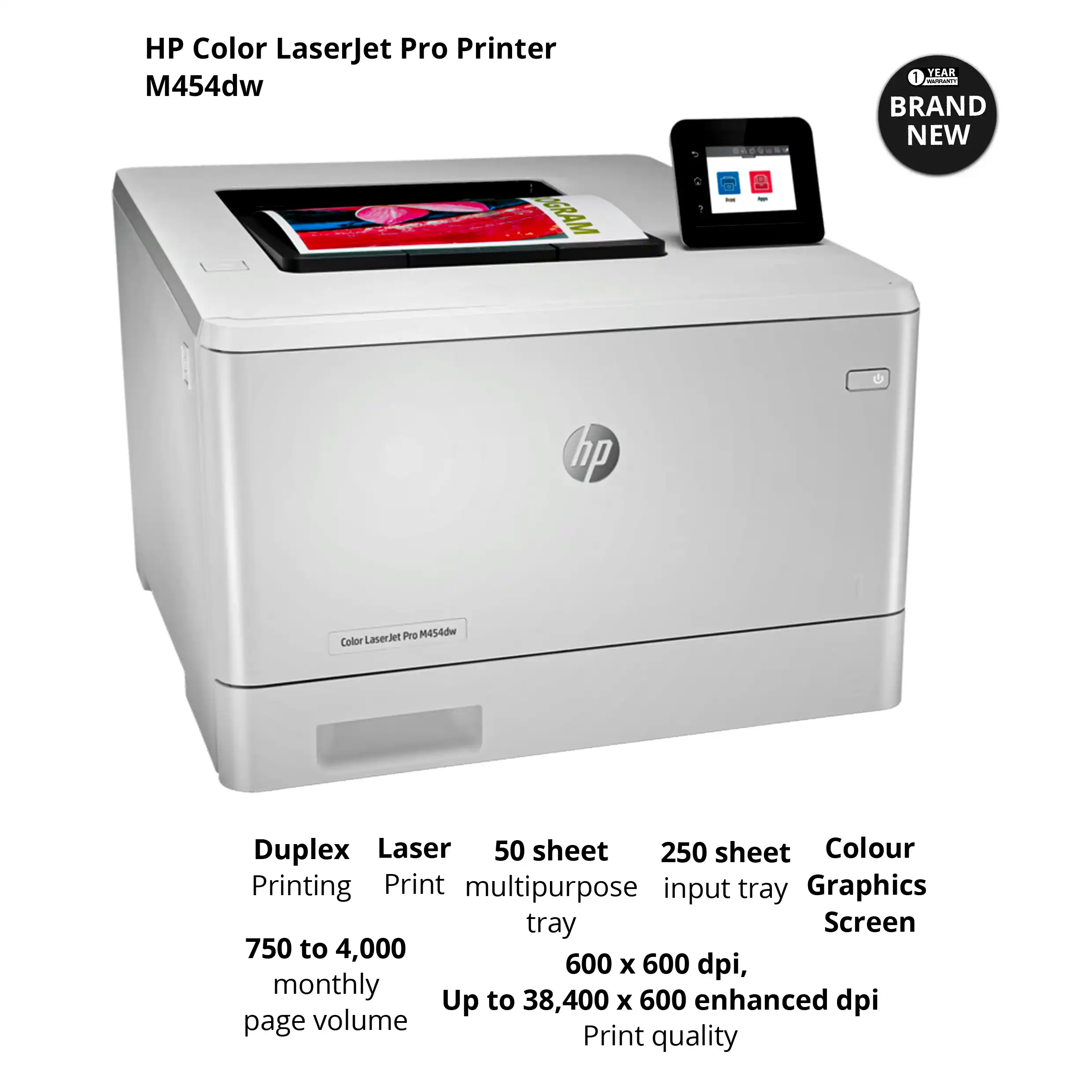 Hp printer colour laserjet -A high-performance monochrome laser printer designed for small to medium-sized businesses. The HP LaserJet Pro N454dw delivers fast printing speeds, professional-quality output, and robust security features. With built-in Wi-Fi, automatic duplex printing, and support for mobile printing, it ensures efficient and seamless document handling.