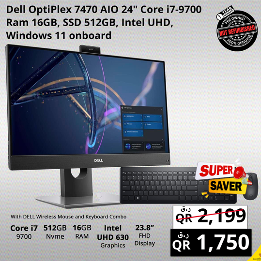 Dell OptiPlex 7470 AIO 24 Core i7-9700 16GB RAM 512GB SSD Windows 11