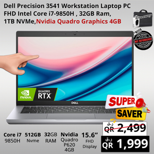 Dell Precision 3541 Workstation Core i7-9850H 32GB RAM 1TB NVMe Nvidia Quadro 4GB